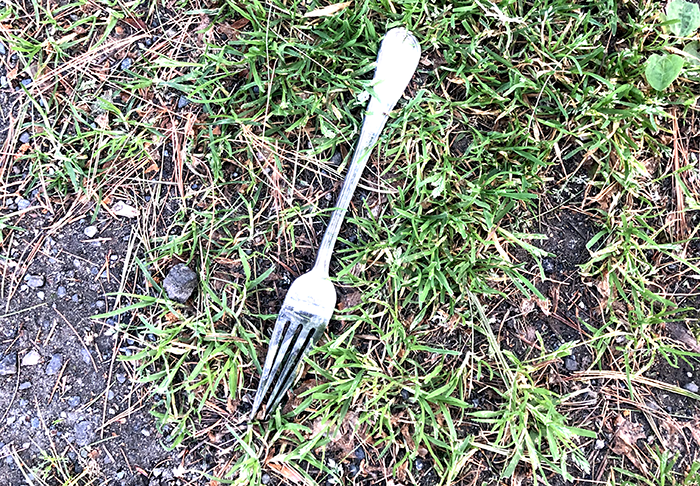 Yes, keep waiting for it. We’ve used the fork-in-the-road joke a few too many tines. It was run over so will fit in well with our flatware collection.