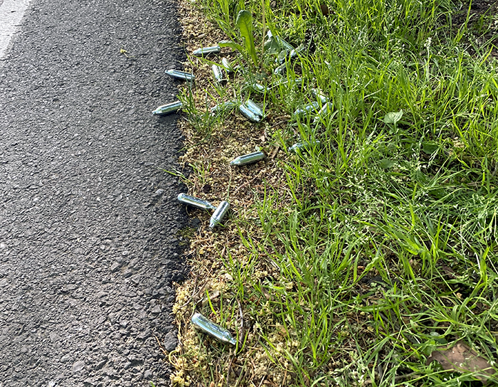We picked up exactly 25 Nitrous Oxide canisters that kids use to “get high.” The reason it gets them high is that it deprives oxygen to their brain. It’s hard to get smart like that.