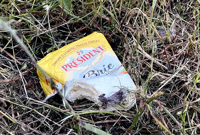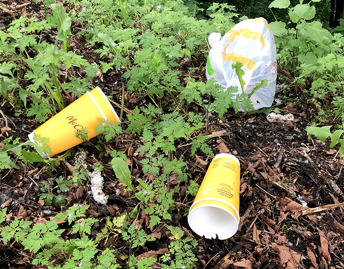 The McLitterers made a second appearance on Norway Hill in as many weeks. The bag contained the standard two clean pancake platters, unopened condiments: two syrups; four butters; two tea bags; and two tea cups, found separately. We’ve found more than fifty of these, but they have been scarce lately.