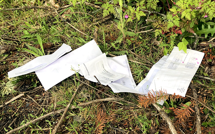 One small batch was from a mailbox just up 100th about 200 feet. We put it back in the mailbox. The second batch was on 145th and was from a block away on a side street. It was from a couple of mail boxes in a cul-de-sac. We left the pile on top of one of the boxes. Hey, we’re not paid to sort mail.