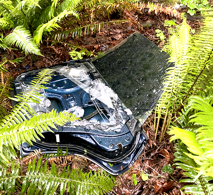 Someone dumped a car door down the hill. Maybe he thought it was contaminated with the coronavirus. Or perhaps he thought summer is here and they wouldn’t need it. Silly goose.