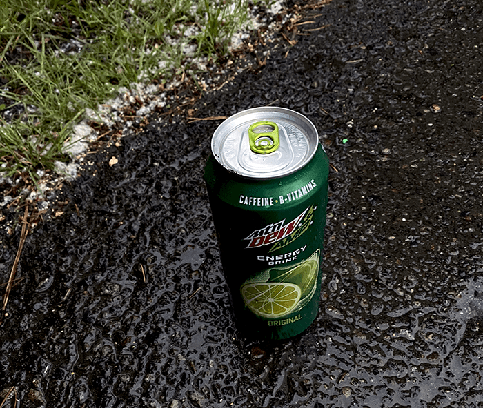 A Mountain Dew Amp energy drink. Did they not have the energy to dispose of it properly?