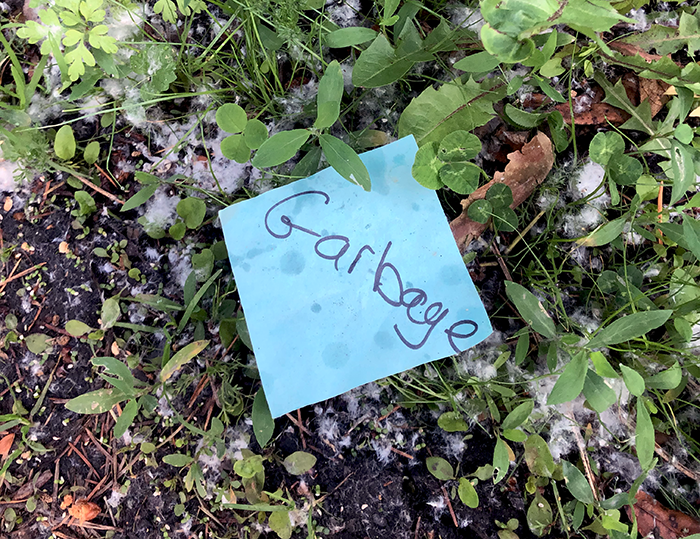 Labelling their trash. This person needs help. They might want to align the writing with the paper, it would look neater. Just saying.