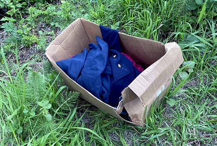 It was high-quality women’s clothes including a suit, a gown and several tops and pants. One of the garments had an original retail tag on it.