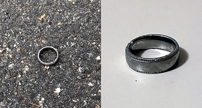 It is a titanium band and much worse for the wear. This is the third wedding band we’ve found on our walks. Each time we’ve tried to find the owner and failed. The others were gold and appeared to be in the $400 to $500 range new, and in new condition. This looks to be in the $150 range in new condition, which this one isn’t. We’ll watch the social media sites, but for now it’s going into our Found Jewelry Jar.