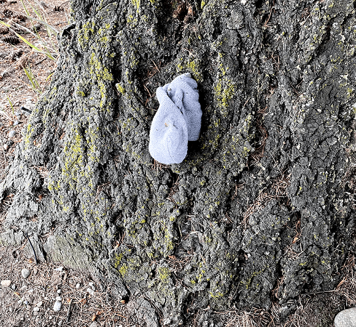 A pair of socks stuck in a tree. Don’t ask us. Why should we know?