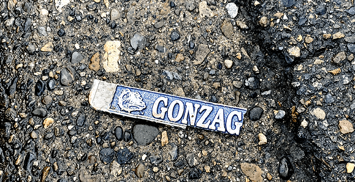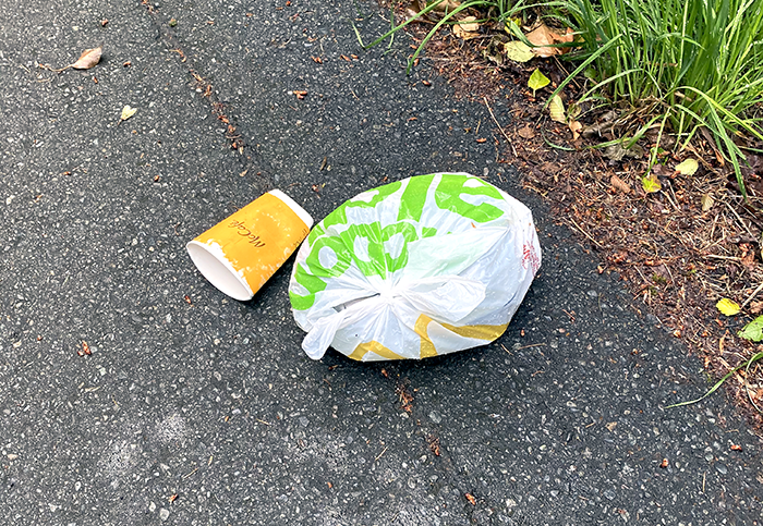 We also emptied our bags at convenient trash bins along the way. The Amazon box had some package wrappings in it and the large white had random post-party trash, we’re thinking probably a wedding shower. Both the box and the bag were dropped on Norway Hill.