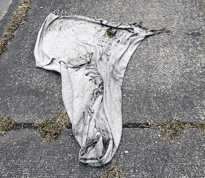 A discarded baby diaper. So, how does a mother who does this raise a kid? “Yes, son, when you were a baby, I tossed your diapers out the window like my mom did for me. It’s a family tradition like tossing our cigarette butts out the window. Make your mom proud.”