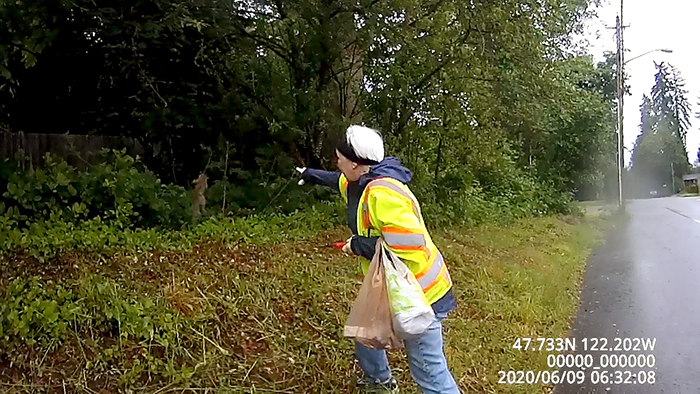 Well, it’s been five years that we have been walking and picking up trash, approaching the 10,000-mile mark. We knew this day would come. A car slowed down to thank us.