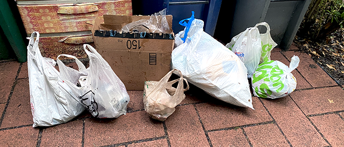 Being the last walk of the week, we review the gloves and dog poop bags.