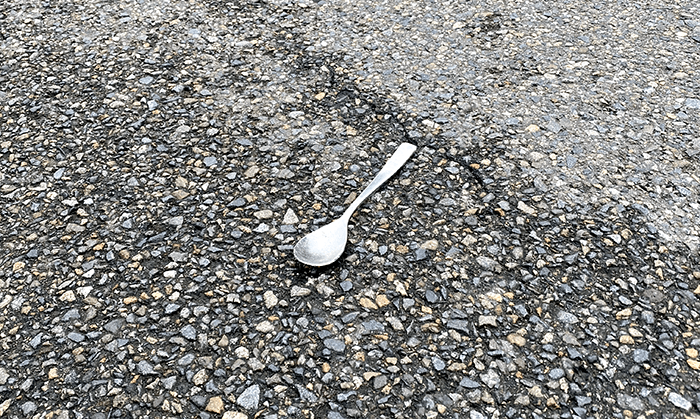 Someone wrote a book about it. “Spoon in the Road.” It has five stars on Amazon, but only two reviews. The author and his wife?