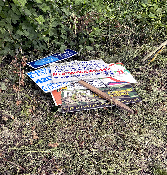 They removed the signs on the corner of 145th. And left them there. Evidently their job was to remove them, not replace them or haul them off. Maybe we’ll tell the Metro guy about them.