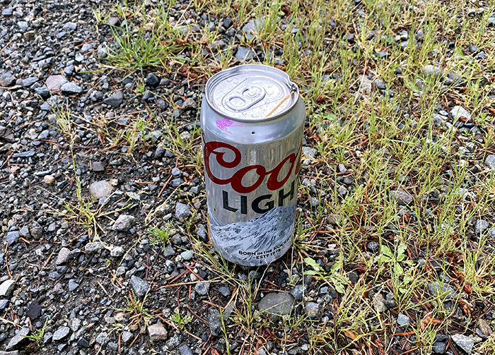 A Coors Light. And it was about a third full due to road damage. It you want to impress us, leave a full George Town Bodhizafa. We’ll drink it if there is only a couple of drops left.