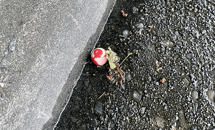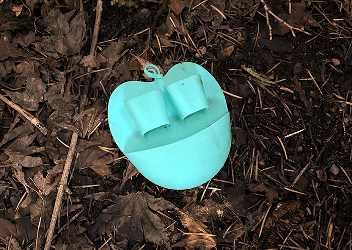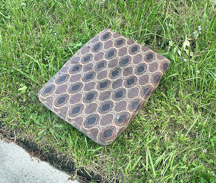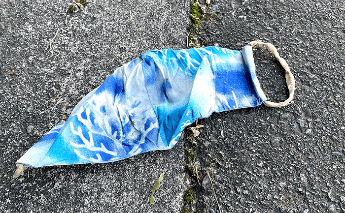 But I did find a mask. These are becoming more prevalent on our walks. We can understand tossing out a paper mask. Well, not really. But this is a hand-made mask. Obviously not by the person who tossed it.