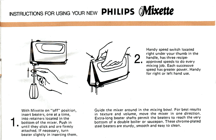 A Philips Mixette portable mixer. We couldn’t find any mention of it on the Internet.