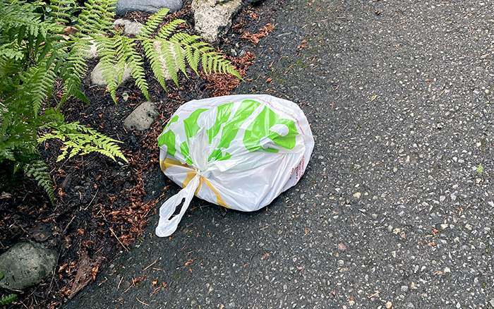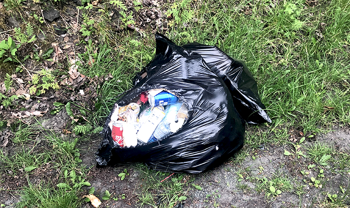 Someone dumped two bags of garbage under the freeway on Riverside Drive. They were too big for us to deal with on foot so we came back later with the car. It as mostly garbage, but we did find what appeared to be old stolen mail mostly from Duvall.