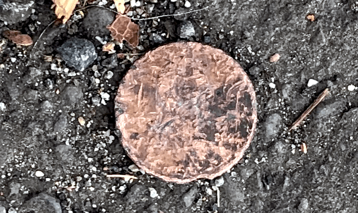 An old 1969 penny was found on Riverside drive It happens to be a “floating roof” penny which, according to this video, is worth about one cent. A newer shiny penny was on the south-bound onramp of the freeway.