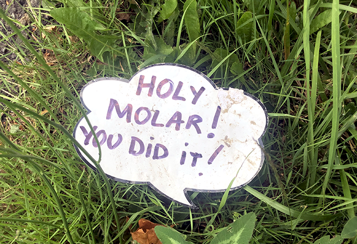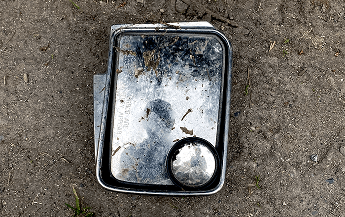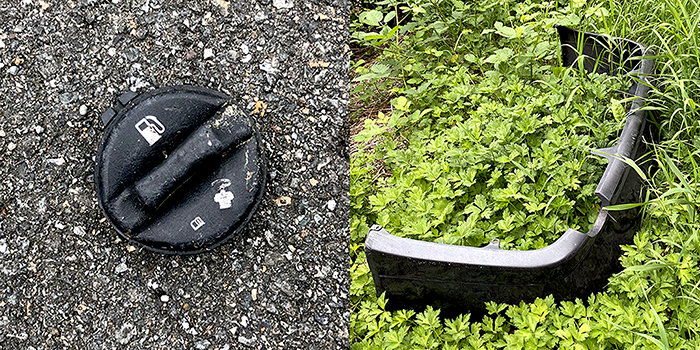 A gas cap near the Shell station and a bumper on Riverside Drive. How do you not notice your bumper fall off your car? On the plus side, they’ll never get stuck in bumper-to-bumper traffic. On the other hand, no place to put their bumper stickers.