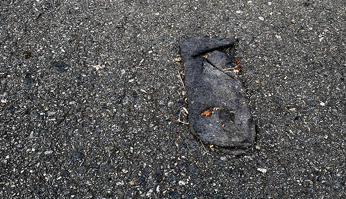 There are exceptions. We still walk the lot and take photos of interest. We also will pick up items of special interest. The sock on the left was left in the lot with a plastic cap next to it. The cap was gone, but the sock remains.