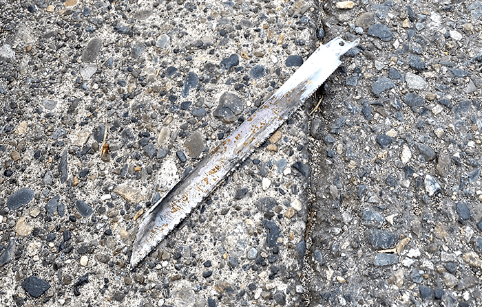 A Sawzall blade. But it was so dull, it didn’t even make it into our tool collection. Recycled.