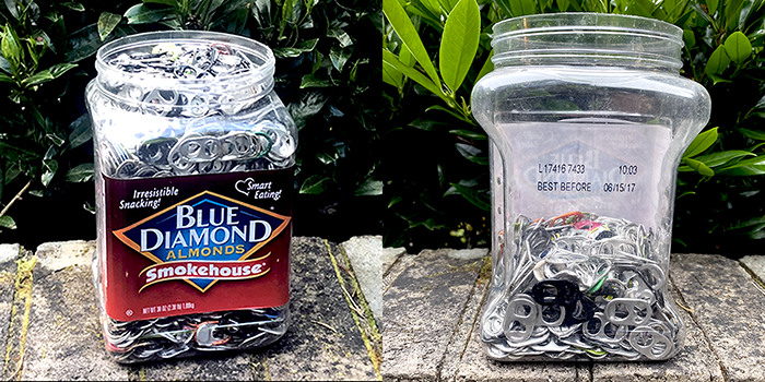Coincidently, our neighbor is leaving tomorrow for a family funeral in North Dakota, we emptied our pop tab jar and added them to the previous batch we had for him to carry along.