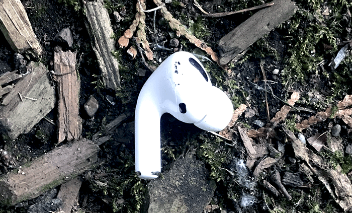 A left Apple ear bud, this time. Again, no good without the other and the charging case. We’ll hang onto it in the hopes of eventually finding a second one. If we find one, with our luck it’ll be another left.