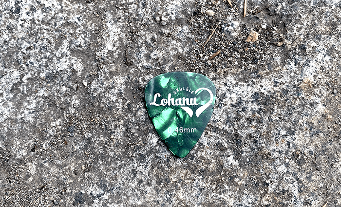 Make that a ukulele pick. 0.45 mm. That must be the thickness. It turns out Lohanu makes ukuleles and they are sold on Amazon for $90 for one model.