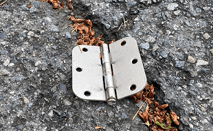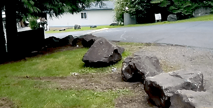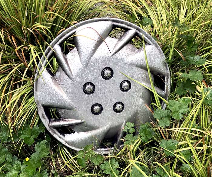 They hit a rock and pushed it several feet into the lawn. The rock had been replaced, but they left several car pieces that we picked up. However, we were rewarded.