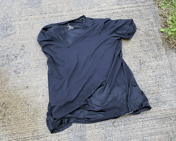 It’ll get washed and sent off to Goodwill with the other clothes we found.
