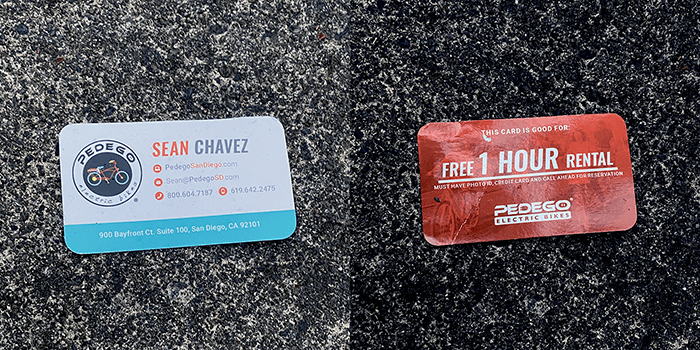 Sean Chavez Electric Bicycles. And good for an hour’s free ride. A free ride for the cost of a trip to San Diego. Delta has a nonstop for $177. Now if Sean will reimburse us for the fight, we’re in.