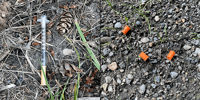 Okay, they were not really a matching pair. The one on the right had been in the ditch for a while and there was something in it.