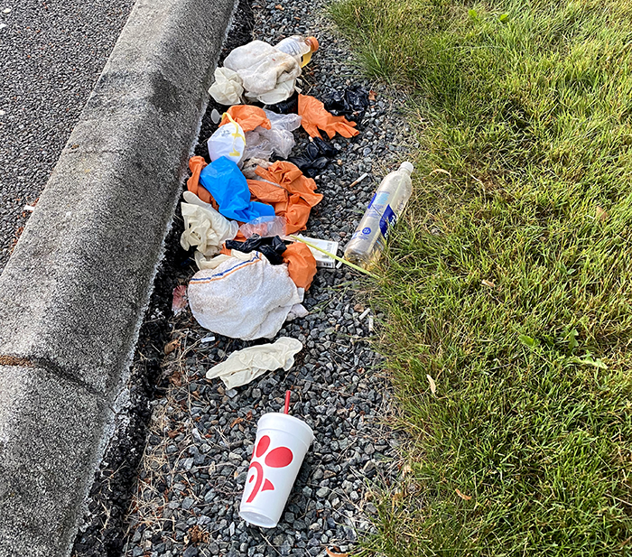 They were probably dropped by some bank robbers who fled after nobody believed that they were there to rob the bank. “Ha, ha! Good joke that we’ve only heard about a hundred times since this Pandemic began.” We’ll sterilize and wash them. We usually use them ourselves, but someone suggested donating them. Great suggestion, we will find someplace. No, we send the disposable masks we pick up to the garbage.