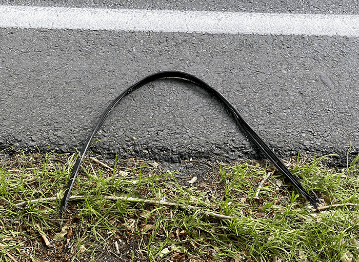 A ten-inch nail. This would have gone through the tire, inner tube and the rim. Yes, we know most cars now do not use inner tubes. For those who do not know, an inner tube is what you float down the river in.