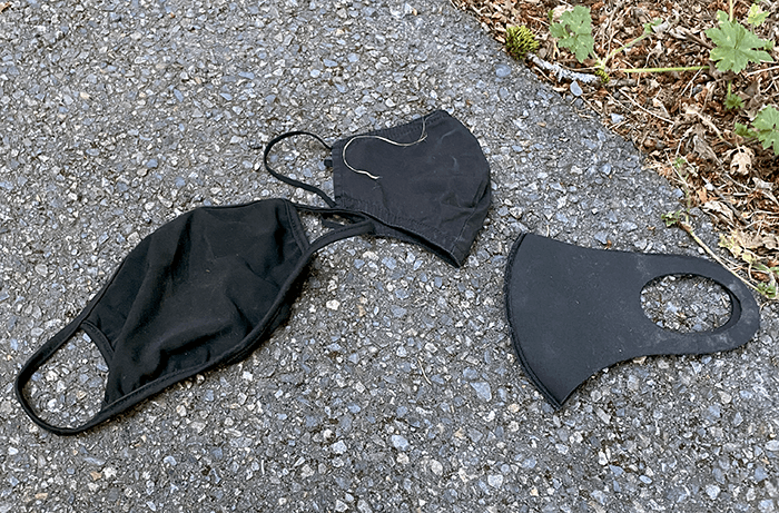 We have been finding random discarded masks on our walks. Today we found three black masks.