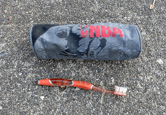 Dog poop bag dispensers designed to be put on your dog’s collar. It’s no wonder we find these discarded containers. Turn the tables, folks. Say that dogs ruled the world and some of them had pet humans. How would you feel about hanging a poop bag container around your neck for when you poop in public? “What the heck are you doing??” In dog-speak, it would be “Grr-arf-arf-Wrowl?” And what shape would they use for a pet human’s dispenser? More TrashWalking mysteries.