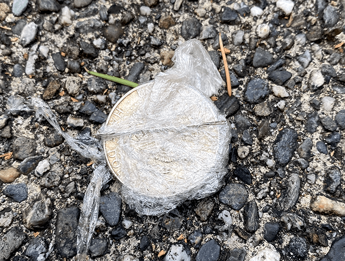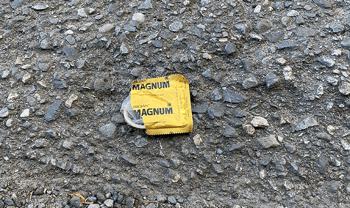 We have no idea what the needle, or for that fact, what the Saran wrap was for. Such are the mysteries of TrashWalking.