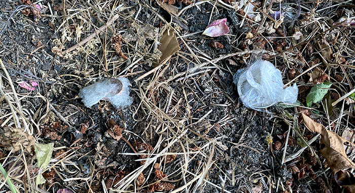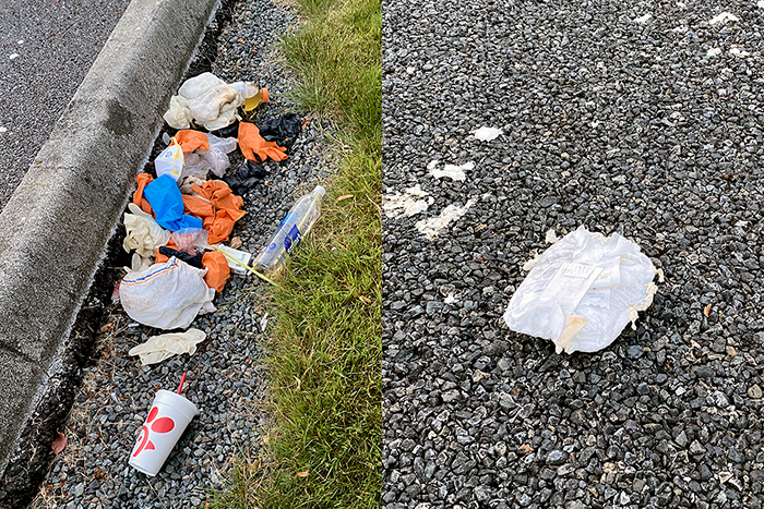 Twenty-seven gloves and six bags. At least three of the bags are serial offenders periodically leaving bags in the same location. We keep threatening to obtain a trail camera.