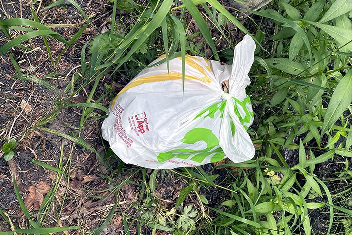 Down the hill near the start of our walk we found a McLitterer’s bag.