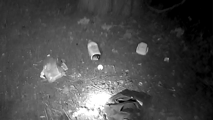 Among the rotting clothing there was a bag of random items.