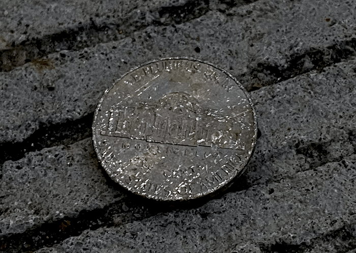 The nickel was a bit beat-up but we gladly accepted it.