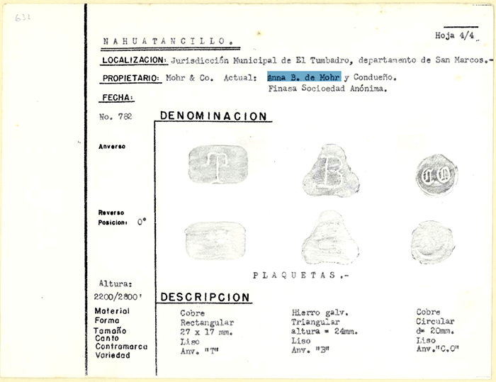 The shipper was Anna B. de Mohr of Guatemala City, Guatemala. Searching for her online we got a hit in a catalog of tokens published online by Francisco Marroquín University in Guatemala.