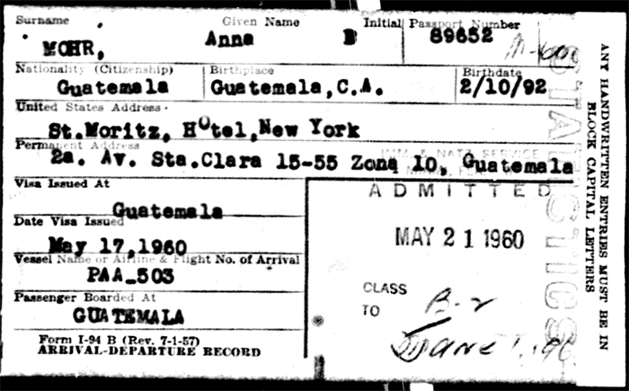 We also found a visa for Anna online showing she visited New York in 1960.