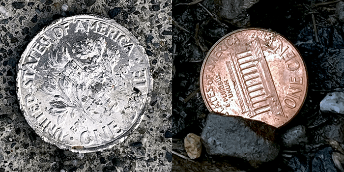 Eleven cents! The dime was found on the freeway on-ramp and the penny was found on Riverside Drive. Not much, but better than nothing.