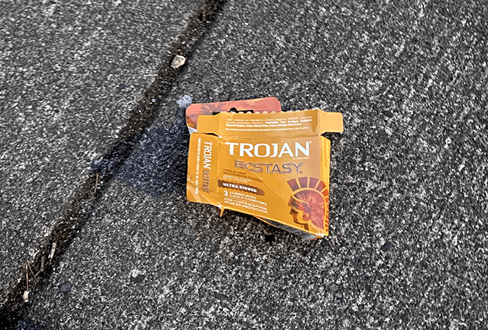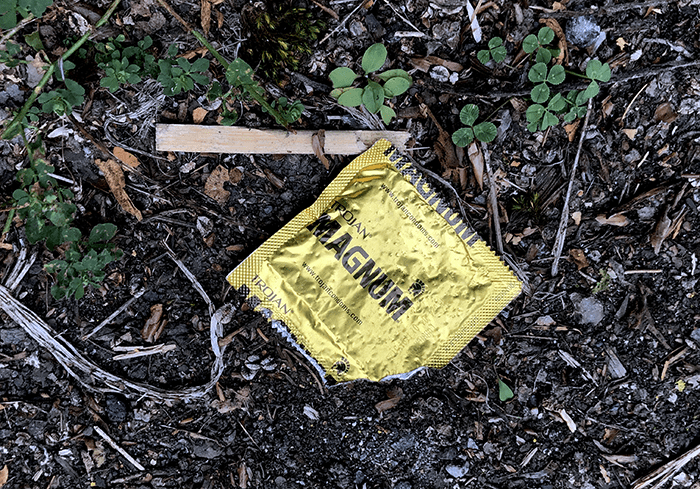 One of the first things we found at the Sammamish River Trail parking lot in Bothell was a condom wrapper.