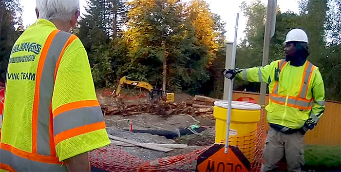 With the construction on 100th Ave NE wrapping up, we decided to resume our new Wednesday route that takes us by the construction site. We saw the traffic controller who we met several times on our Tuesday/Thursday walks when we came to the construction.