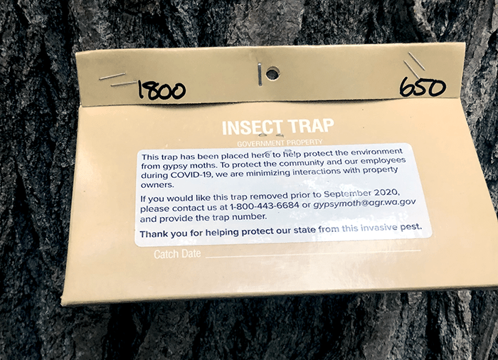 Last year the state put out a bunch of Gypsy Moth traps and we faithfully monitored one. Nothing. Well, what do you expect. Don’t call it an “Insect Trap.” How about “Ye Olde Insect Inn?” Or “Le Chateau Bugue?” Would you stay at a hotel called “The Death Trap?”