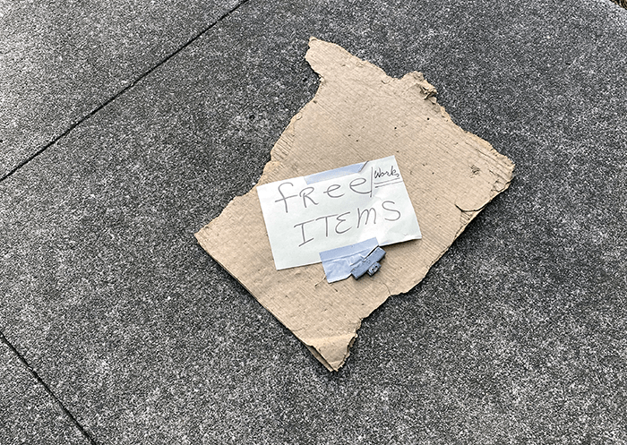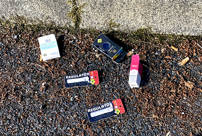 Someone tossed two empty chicken packages in the gutter about three blocks from Safeway.