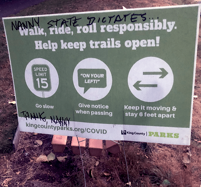 Since the Pandemic began someone set up a “Together for Bothell” sign along NE 145th Street. However, it was on Kirkland property and a Kirkland mower cut it down.