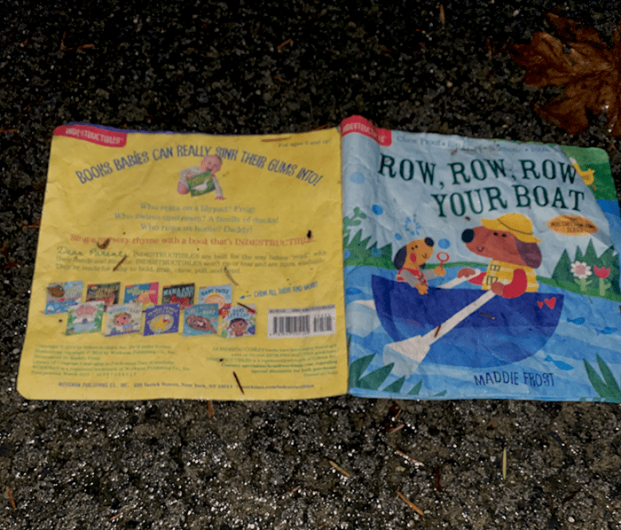 We found a kid’s book, good thing it was waterproof.
