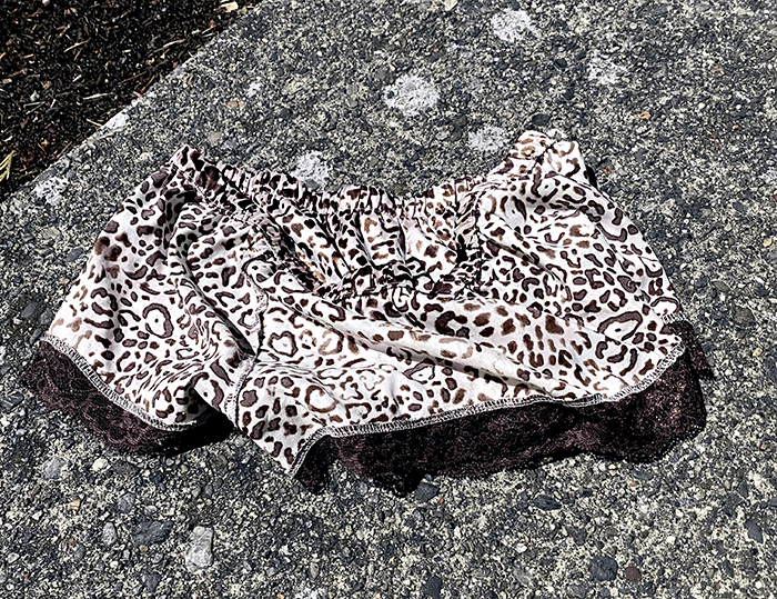Nearby, a pair of ladies’ undies.
